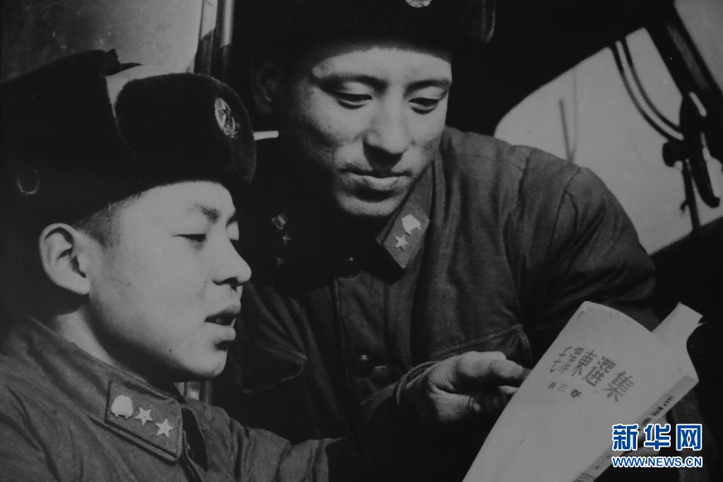 乔安山(右)和雷锋在一起(翻拍资料照片)。新华社发