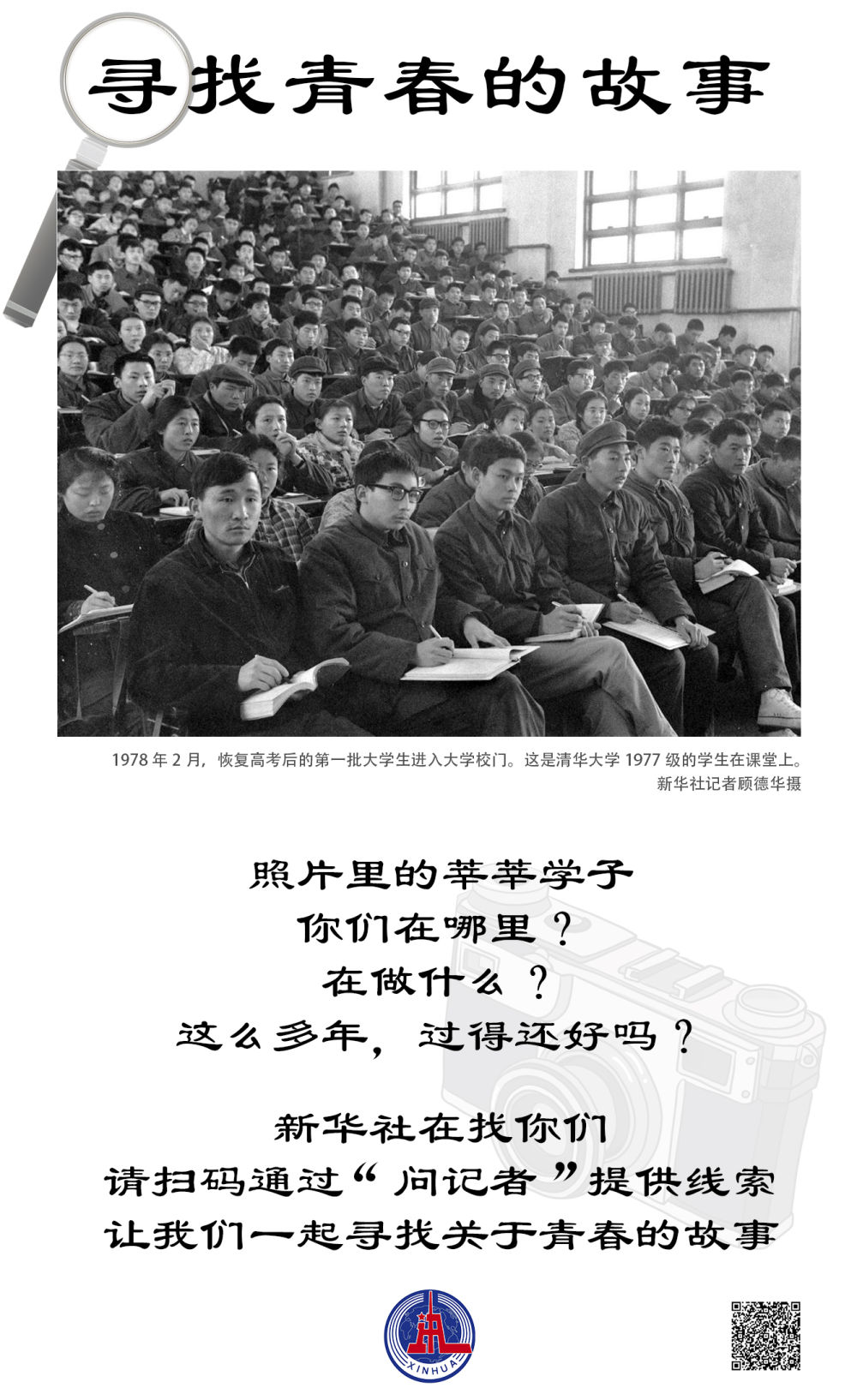 40多年后,当再次看到这张难忘的经典照片,63岁的邓勇仍对那天在清华礼堂西侧阶梯教室与同学们一起上大课的经历记忆犹新。