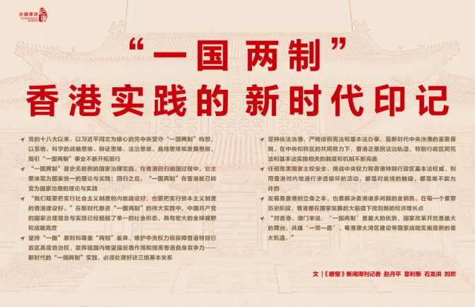 ◆ “我们既要把实行社会主义制度的内地建设好,也要把实行资本主义制度的香港建设好。”在新时代推进“一国两制”的伟大实践中,中国共产党的国家治理理念与实践已经超越了单一的社会形态,具有宏大的全球视野和战略高度