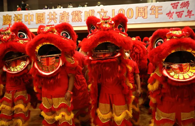 ▲ 6月20日,以“贺建党百年、庆香港回归”为主题的“百狮贺百年”舞狮活动在新界乡议局礼堂举行启动仪式 吴晓初摄/本刊