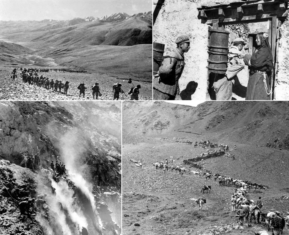 1950年,进藏大军从四川、青海、新疆、云南四个方向向西藏挺进。1951年5月23日关于和平解放西藏办法的“十七条协议”签订后,中国人民解放军遂向西藏和平进军。