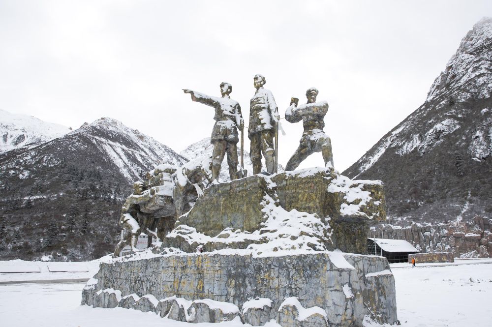 这是雀儿山下张福林烈士陵园前竖立着的“十八军将士精神永存”雕塑(2019年11月1日摄)。新华社记者 江宏景 摄