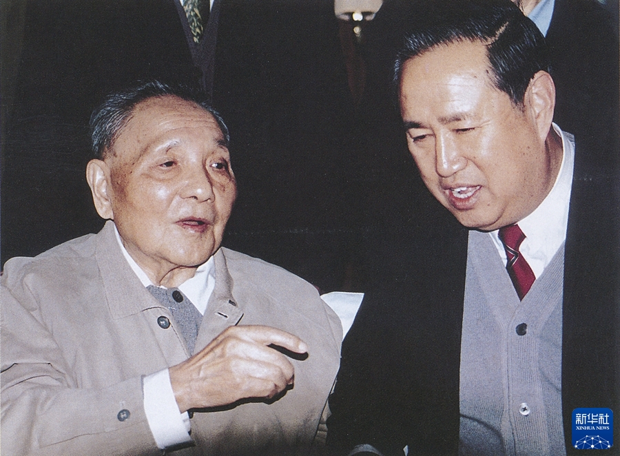 1993年12月9日,邓小平同志在济南听取姜春云同志汇报山东省经济社会发展情况。新华社发