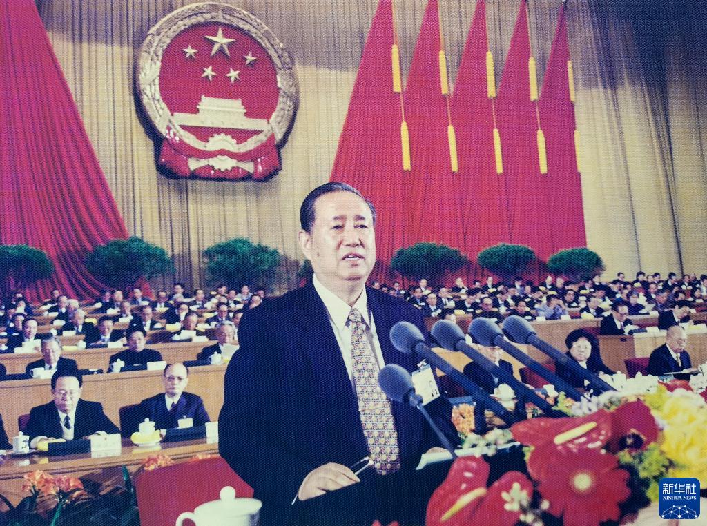 1999年3月9日,姜春云同志在九届全国人大二次会议上作全国人民代表大会常务委员会工作报告。新华社发