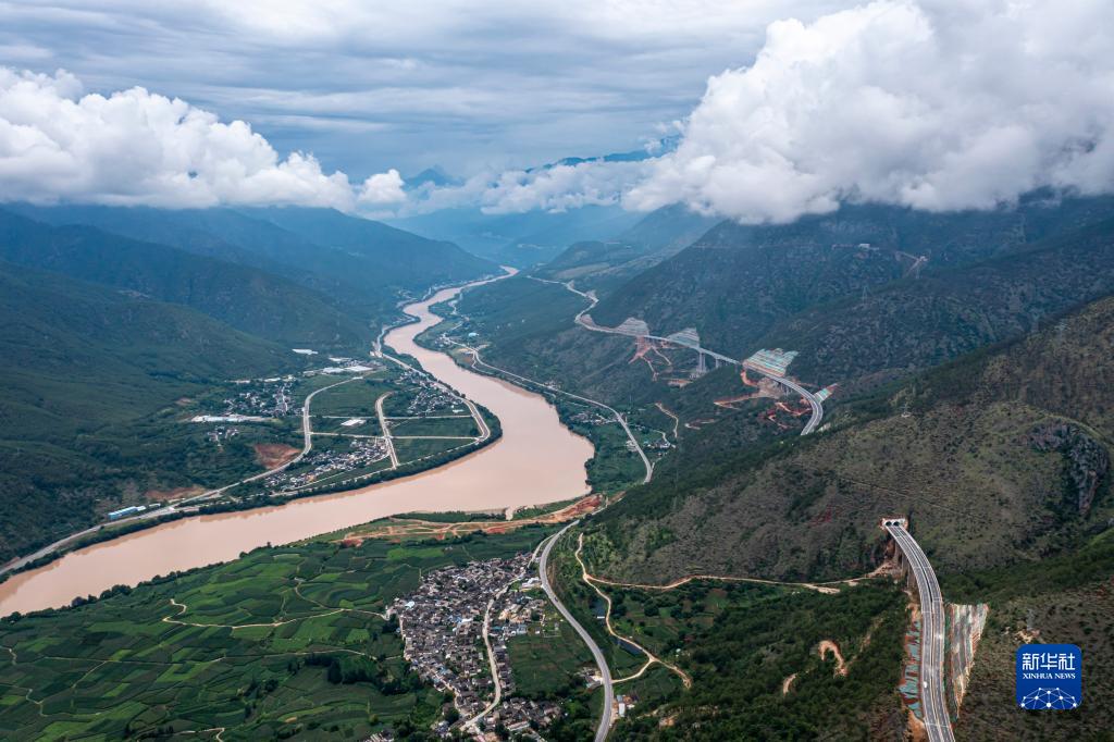 丽江至香格里拉的高速与金沙江伴行(7月21日摄,无人机照片)。新华社记者 江文耀 摄