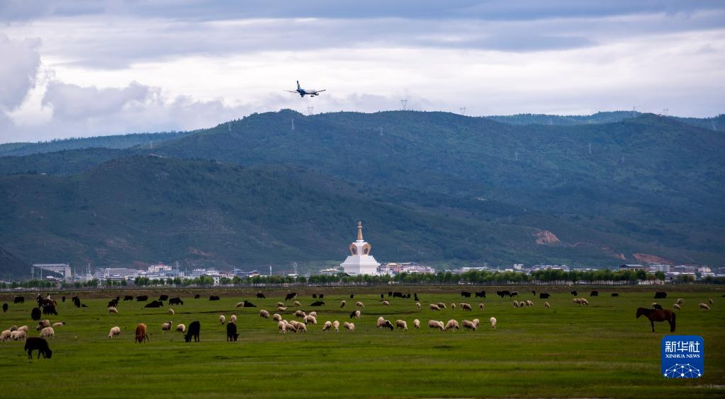 航班即将降落在云南迪庆香格里拉机场(7月17日摄)。新华社记者 江文耀 摄