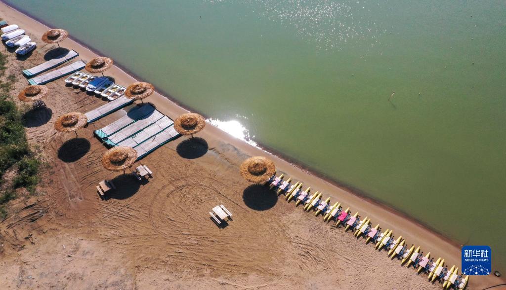 游客在吉林省松原市查干湖参观游览(无人机照片,9月18日摄)。 新华社记者 许畅 摄
