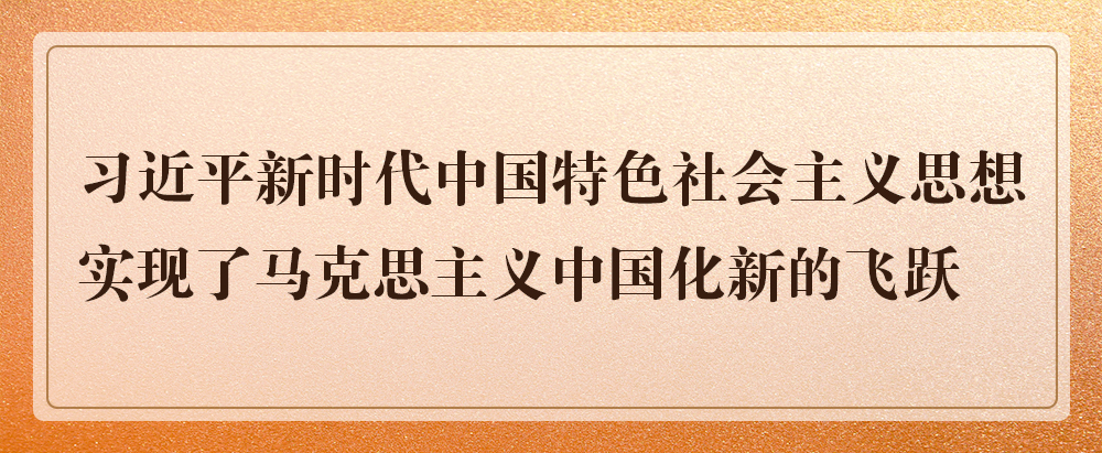 习近平新时代中国特色社会主义思想是当代中国马克思主义、二十一世纪马克思主义,是中华文化和中国精神的时代精华,实现了马克思主义中国化新的飞跃。党确立习近平同志党中央的核心、全党的核心地位,确立习近平新时代中国特色社会主义思想的指导地位,反映了全党全军全国各族人民共同心愿,对新时代党和国家事业发展、对推进中华民族伟大复兴历史进程具有决定性意义。