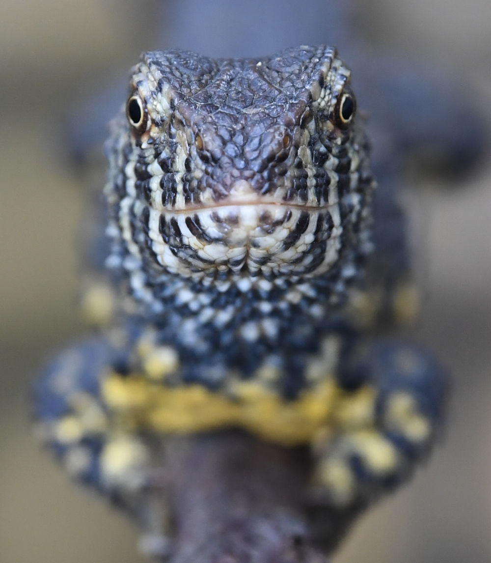 ↑2021年5月13日在广东罗坑鳄蜥国家级自然保护区鳄蜥研究中心拍摄的鳄蜥头部特写。