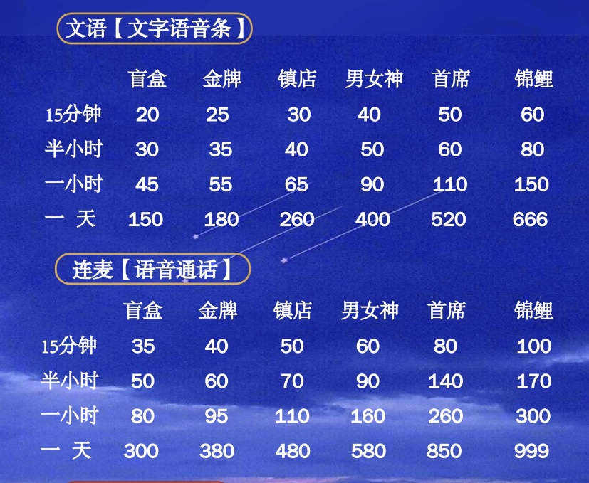 网络上一家陪聊店铺的报价单