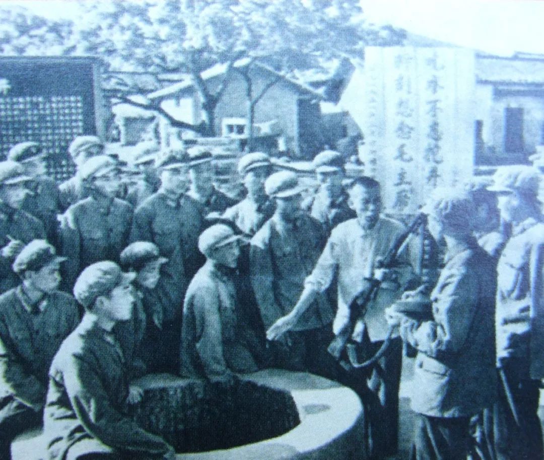 50年代末,当地群众在为驻军官兵讲述毛主席挖井的故事 (沙洲坝村村委会提供)