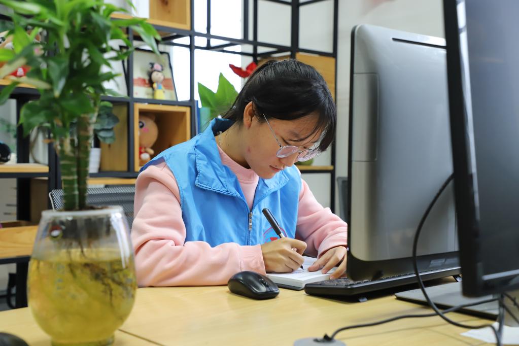 刘羲檬在学校勤工俭学岗工作。新华社记者徐凯鑫 摄