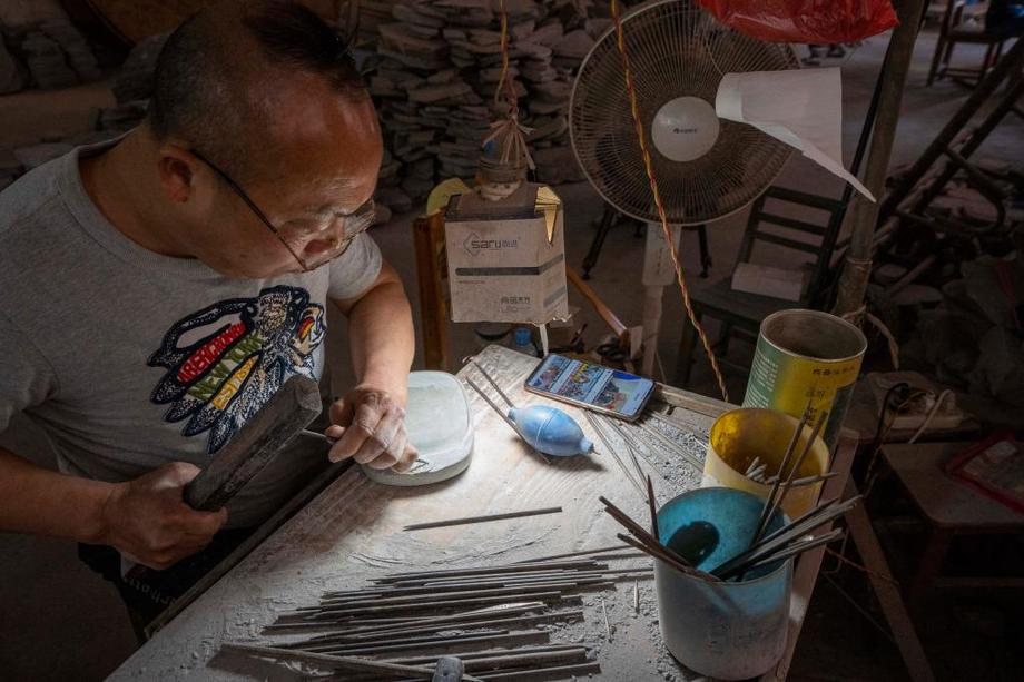 位于肇庆市端州区的白石村,是端砚的发祥地。从唐代开始,制砚就成为这里村民最主要的谋生技艺,代代相传至今。如今村里有九成以上家庭从事制砚。巧匠们用一刀一刀的凿刻,刻出了端砚制作文化的兴盛与传承。