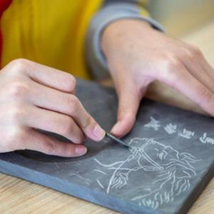而在白石村的黄岗小学,孩子们有一套独特的校本课程,从一年级识砚开始,一年学一项端砚的绝活。砚文化课堂还把书法、绘画、拓片的学习融合到一起,并邀请白石村的制砚大师们定期到学校给学生们上课。