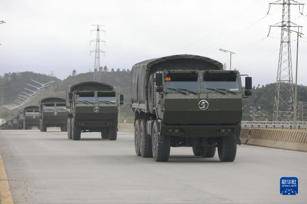 联勤保障部队某汽车团官兵进行综合运输保障公路机动(2022年7月5日摄)。新华社发(贺小龙 摄)