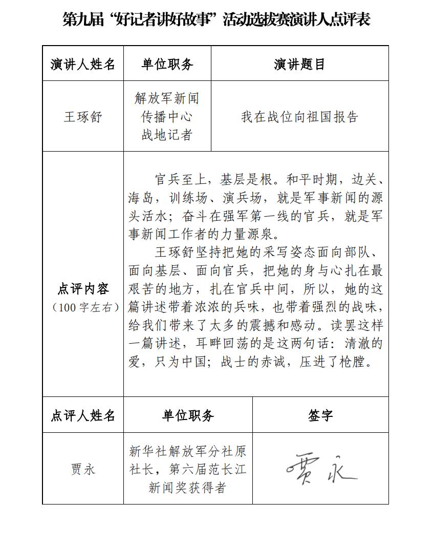 此时此刻,我要向祖国报告的是:作为一名战地记者,请祖国和人民放心,我会一直坚守我的战位,用笔触和镜头记录人民军队的发展变化,展现官兵们的风采风貌。官兵们的战位在哪里,我的战位就在哪里!