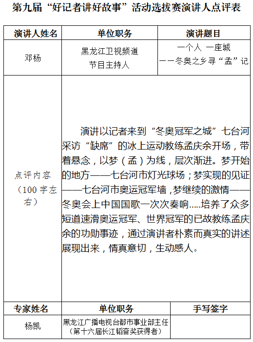 此刻,如果有一个面对面采访的机会,我也想问孟庆余教练:“您当年的选择值得吗?您的梦想实现了吗?”我想,我的这身着装就是答案!而在2022年北京冬奥会上,伴着一次又一次奏响的中华人民共和国国歌,一次又一次响起的“gold medal winner from China”播报音也告诉了我们答案。我想说,是一个个好教练创造了中国传奇。孟教练,您看,龙江冰雪正在燃烧,中国冰雪未完待续!