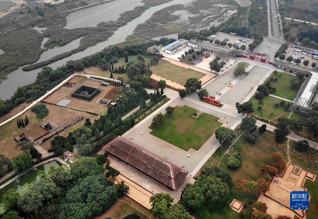 这是河南安阳殷墟宫殿宗庙遗址(2018年10月14日摄,无人机照片)。 新华社记者 李安 摄