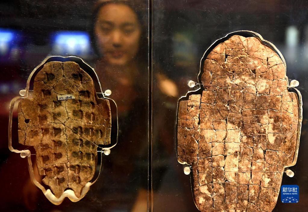游客在河南安阳殷墟博物馆观看展出的卜甲(2018年10月12日摄)。 新华社记者 李安 摄