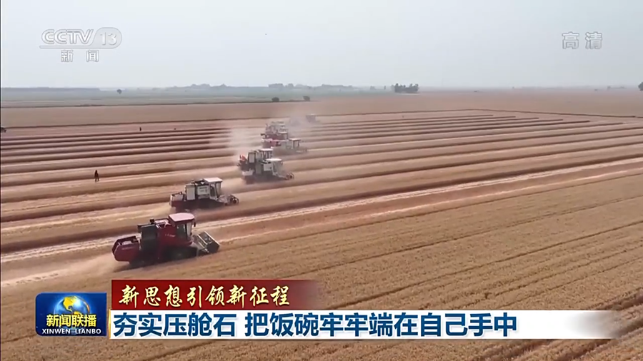 今年,我国克服冬小麦大面积晚播、南方局部严重高温干旱等困难,强化粮食安全保障,粮食产量再创历史新高,稳住了农业基本盘,为应对各种风险挑战、构建新发展格局提供了坚实支撑。