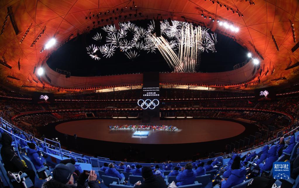 2022年2月4日晚,第二十四届冬季奥林匹克运动会开幕式在北京国家体育场举行。这是开幕式上的焰火表演。新华社记者 徐子鉴 摄