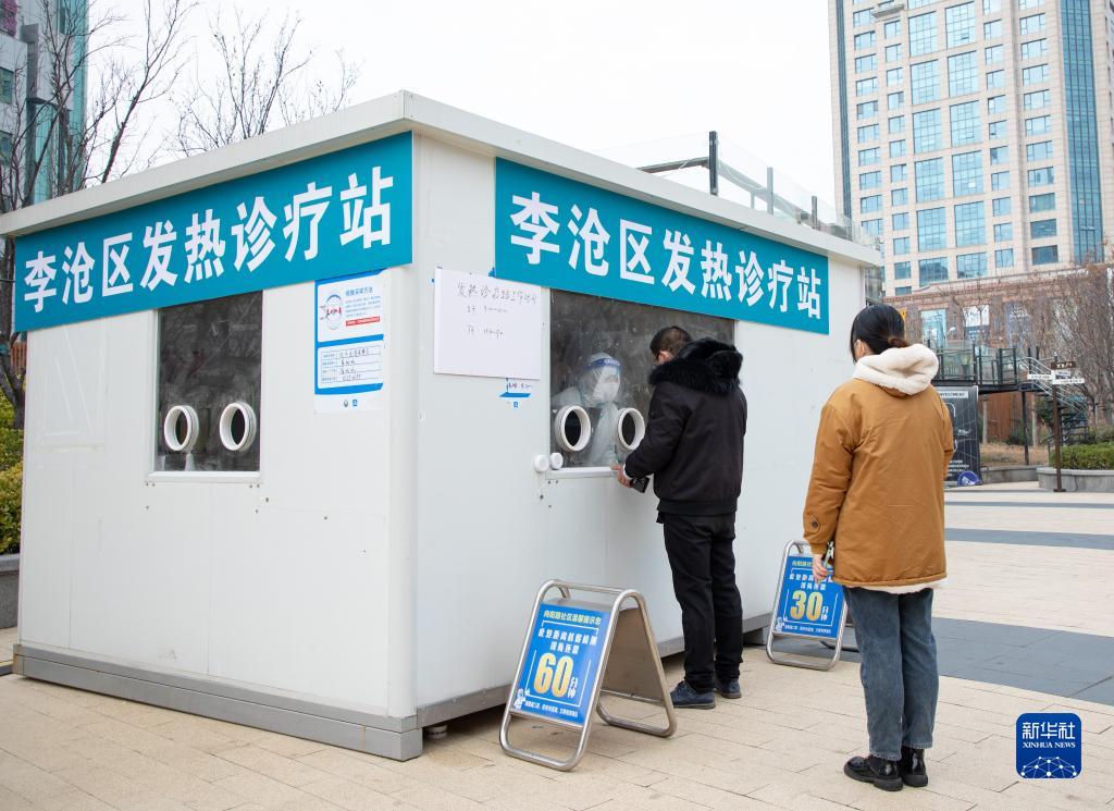 2022年12月20日,市民在山东省青岛市李沧区一处由核酸采样点改造而成的发热诊疗站排队就诊。新华社发(张鹰 摄)