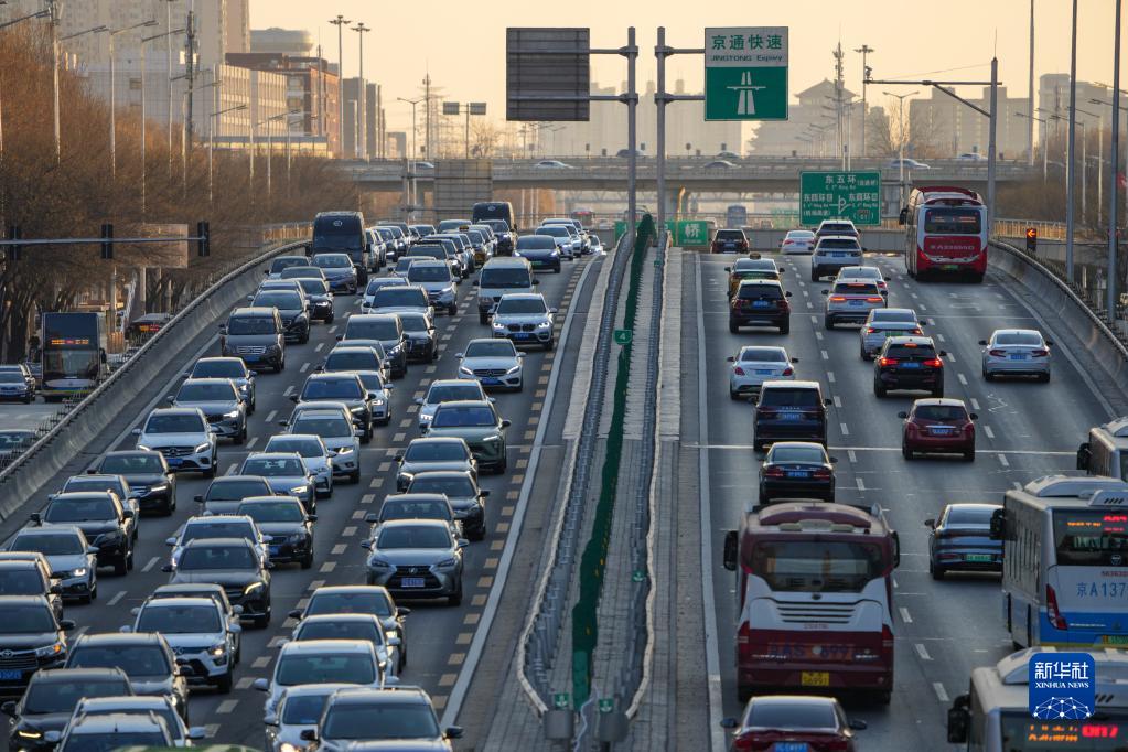 2023年1月3日在北京市朝阳区建国路拍摄的早高峰车流。新华社记者 鞠焕宗 摄