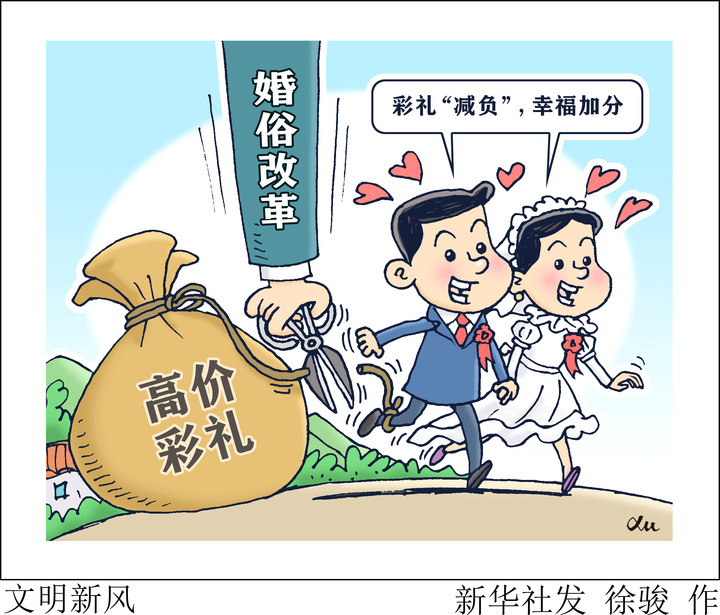 随着经济快速发展和社会剧烈变迁,婚俗也发生巨大变化,一些地方的“天价彩礼”、盲目攀比等婚姻陋习与现代文明社会形成巨大反差。如何为爱“减负”,让婚俗与时俱进,各地不断开展探索。