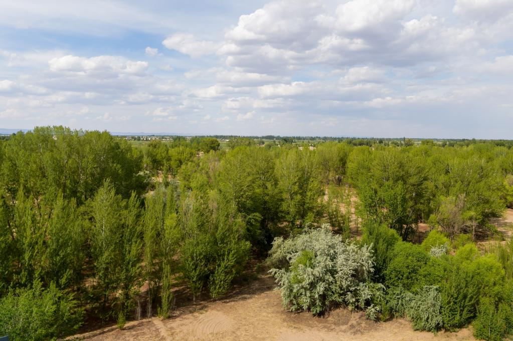 临河区国营新华林场绿树葱葱。自1978年起,该林场大力治理耕地盐碱化造成的土地沙化问题,累计造林3.9万亩。
