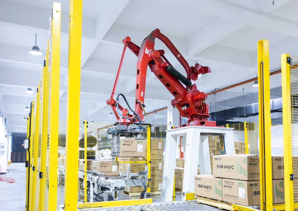 图为恒申集团的自动化包装车间。新华社记者董建国 摄