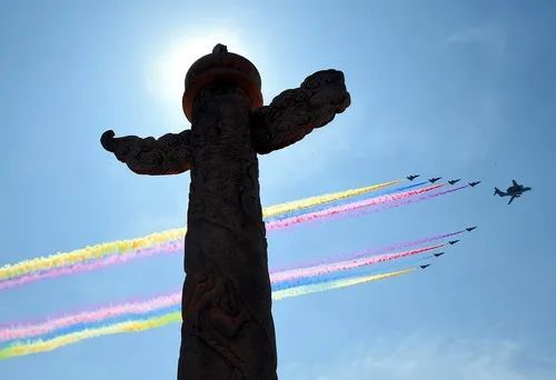2015年9月3日,中国人民抗日战争暨世界反法西斯战争胜利70周年纪念大会在北京隆重举行。这是领队机梯队接受检阅。 新华社记者 王颂 摄