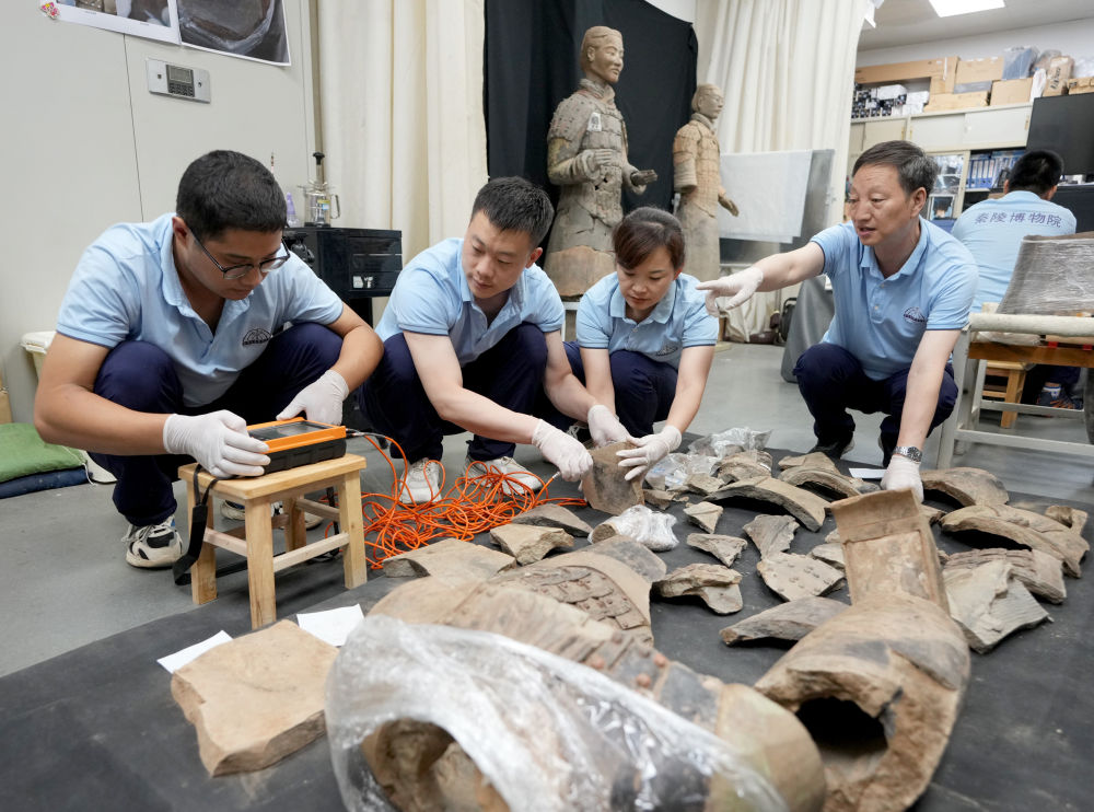 兰德省已经在这里进行修复工作26年,他的修复团队已修复兵马俑140余件。