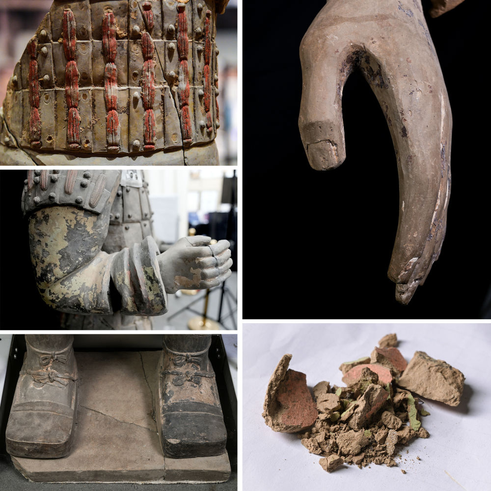 在目前已发掘出土的数千尊陶俑中,没有两个秦俑的面貌完全相同,秦代工匠在制作中做到了真正的“千人千面”。在秦俑保护和修复过程中,文物修复工作人员和制作这尊陶俑的秦代工匠产生了跨越千年的“奇妙对话”。通过拼接残碎的陶俑,工作人员了解到秦代工匠制作陶俑的技法,甚至还在陶俑身上发现了工匠的指纹。