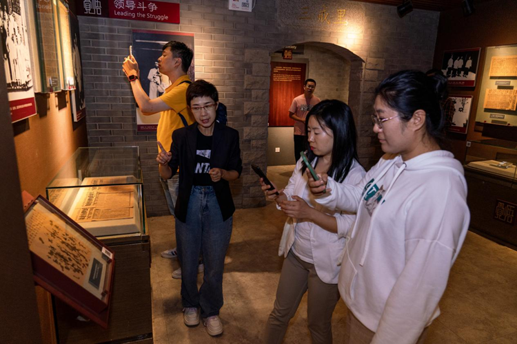 9月26日,在天津市觉悟社纪念馆,工作人员向“文明中国”主题采访报道组讲述一百多年前青年学生爱国运动的英勇事迹。新华网 钟奕 摄