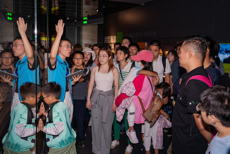9月24日,天津市滨海新区国家海洋博物馆的志愿者正在为参观者进行科普讲解。新华网 钟奕 摄