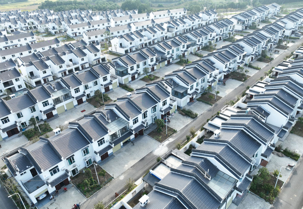 ↑建设完工的湖北省沙洋县沈集镇帅店新社区(9月7日摄,无人机照片)。沙洋县沈集镇全域国土综合整治项目着眼于耕地碎片化、空间布局无序化、资源利用低效化、生态质量退化等问题,打造集约高效的生产空间、宜居适度的生活空间、山清水秀的生态空间。
