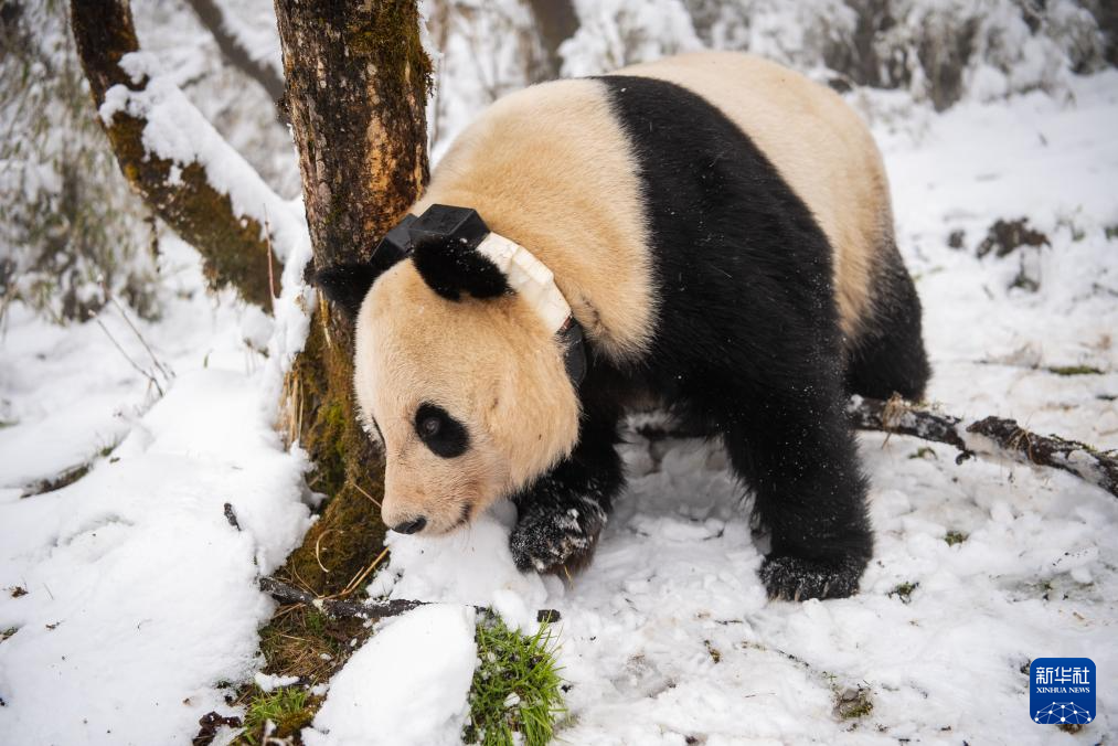 这是在大熊猫国家公园卧龙片区拍摄的野化放归大熊猫(2020年4月22日摄)。新华社记者 胥冰洁 摄
