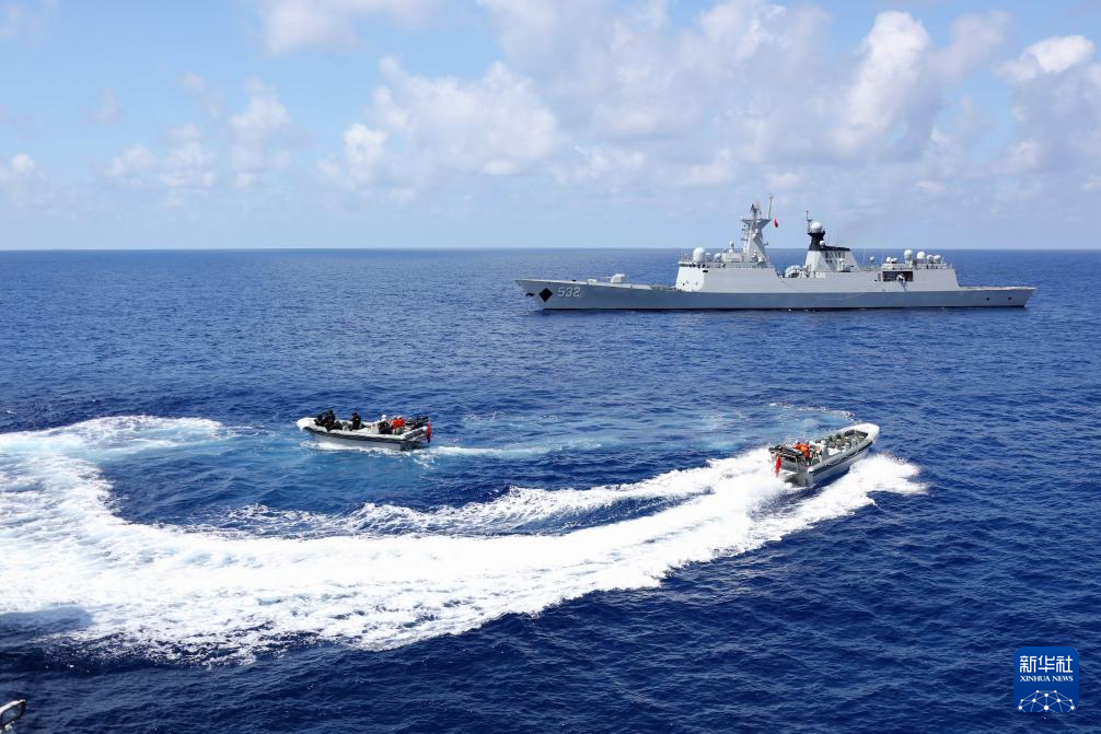 中国海军第35批护航编队开展反海盗针对性训练(2020年5月2日摄)。新华社发(姜霞摄)