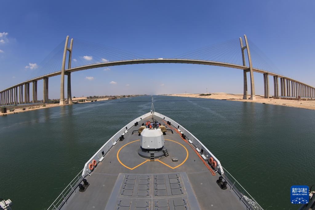 中国海军第26批护航编队航行通过苏伊士运河(2017年9月2日摄)。新华社发(林健摄)