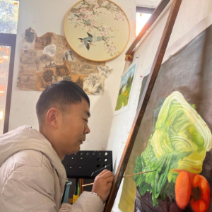 绿泽画院副总经理张利臣说,画院老师手把手教授残疾人学画,从简单画线条、素描开始,到画面布局、颜色搭配,直到他们能独立绘画。对不适宜学画的残疾人,他们还开发出石艺雕刻、制香、制陶等培训项目。孔村镇政府还帮助画院销售残疾人文创产品。
