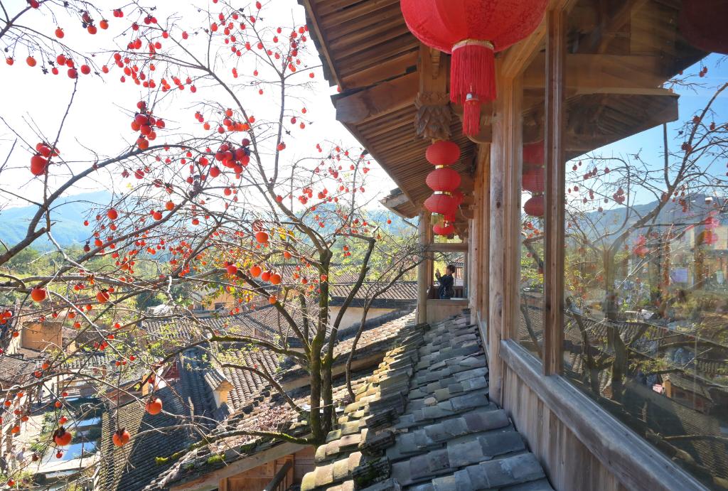屏南县熙岭乡龙潭村的红柿子成为美丽乡村的一道风景(2023年12月5日摄)。新华每日电讯记者林善传摄
