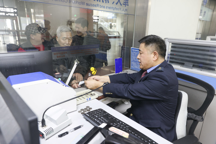 1月12日,旅客在南京火车站售票大厅通过售票窗口购买火车票。新华社发(史俊 摄)