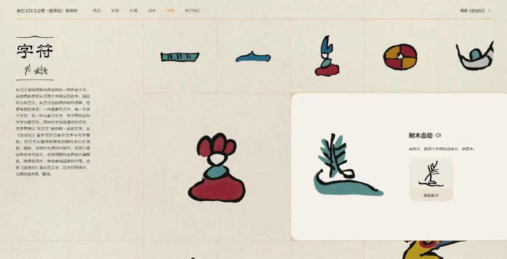 东巴文汉文合璧《创世纪》知识库由国家图书馆与字节跳动公益、丽江市东巴文化研究院合作建设,利用多媒体动画、交互、视听体验方式建立,探索少数民族文字古籍的知识挖掘与立体呈现方式。