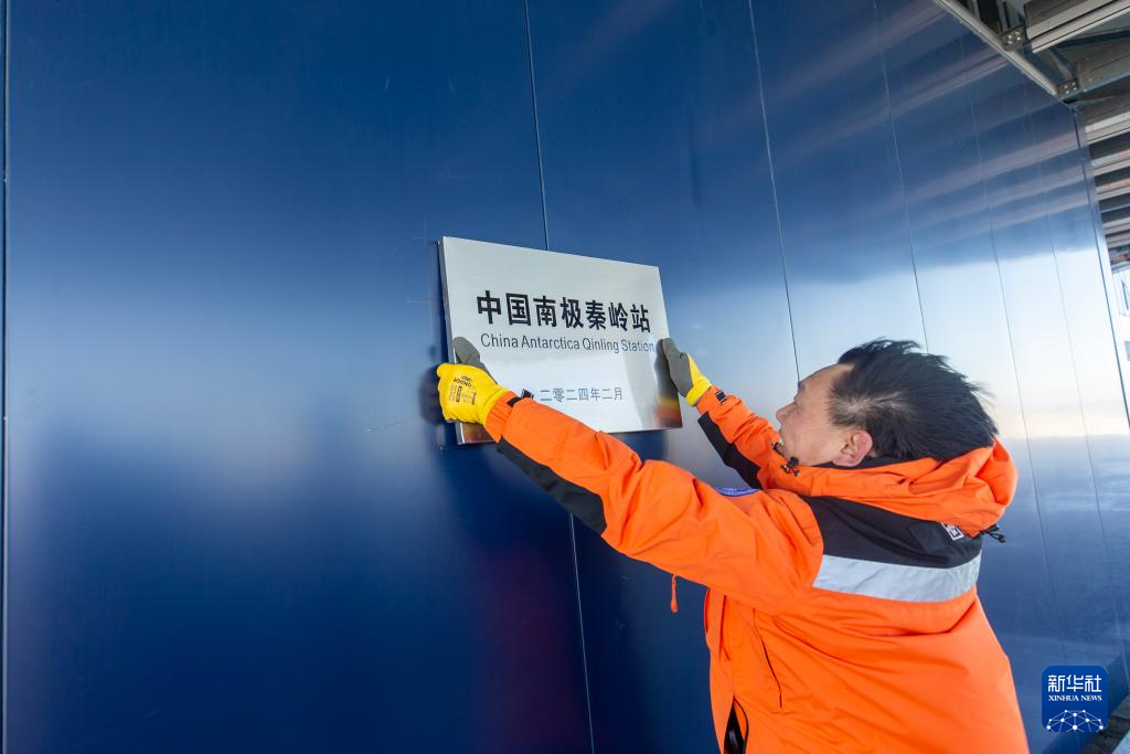2月7日,自然资源部总规划师吴海洋为中国南极秦岭站挂牌。新华社记者 周圆 摄