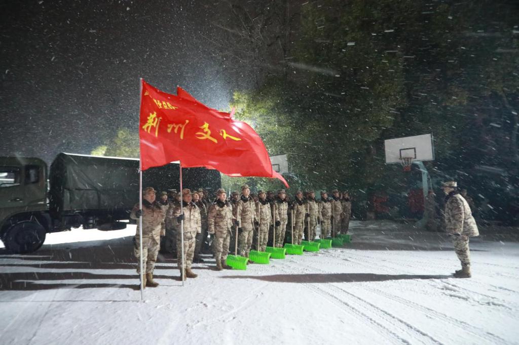 2月2日夜间至3日全天,湖北省荆州市普降大雪。武警湖北总队荆州支队紧急出动,官兵携带铁锹、洋镐等工具,迅速投入清雪任务,其间成功解救被困车辆。