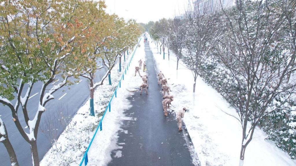 荆州支队官兵破冰除雪。麻鑫 摄