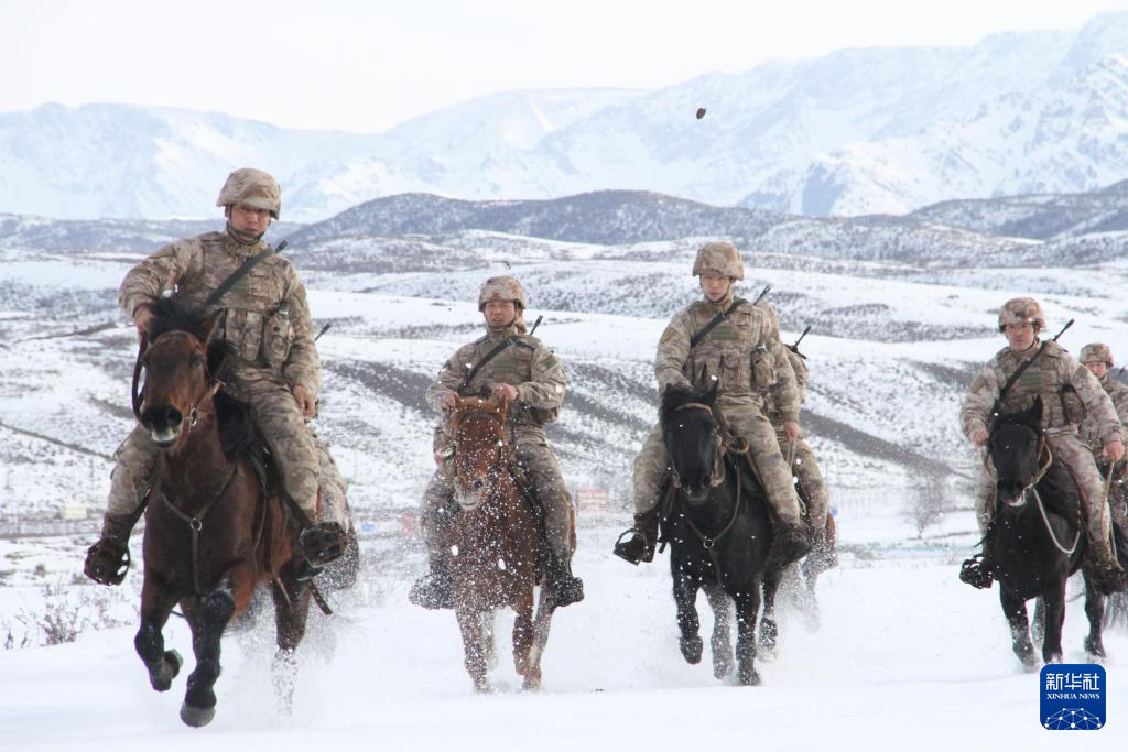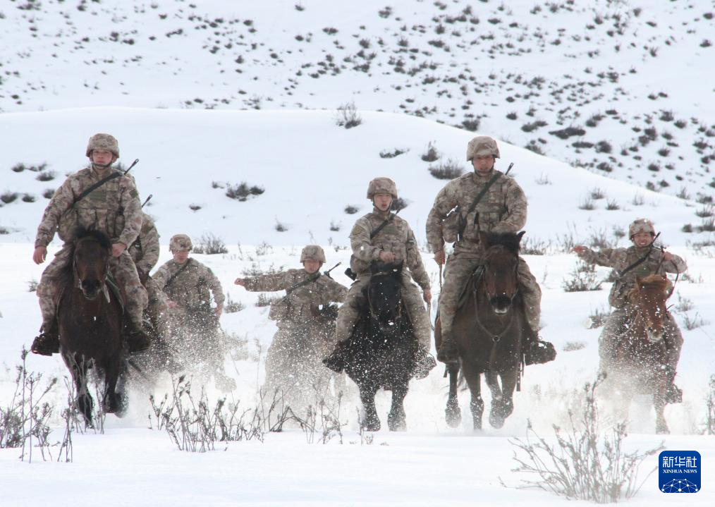 1月11日,边防战士在进行军马集训。新华社记者 刘红霞 摄