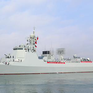 2月21日,中国海军第46批护航编队从广东湛江某军港解缆起航,编队中的导弹驱逐舰焦作舰驶离码头。新华社发(杨捷 摄)