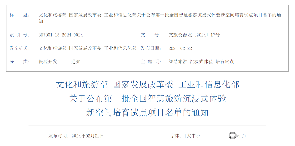 智慧旅游沉浸式体验新空间,是指依托旅游景区、度假区、休闲街区、工业遗产、文博场馆、剧院剧场等文化和旅游场所或相关空间,运用增强现实、虚拟现实、人工智能等数字科技并有机融合文化创意等元素,通过文旅融合、虚实结合等方式,对展示内容进行创造性转化、创新性发展,让游客深度介入与互动体验而形成的一种旅游新产品、消费新场景。