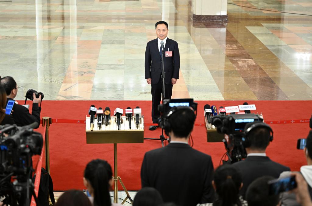 3月5日,第十四届全国人民代表大会第二次会议首场“部长通道”集中采访活动在北京人民大会堂举行。这是国务院国有资产监督管理委员会主任张玉卓接受媒体采访。